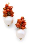 Paire de boucles d'oreilles en vermeil grappes en corail et perles de culture baroques