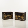 Paire de cabinets en vernis européen ouvrant à deux vantaux à décor de paysages lacustres avec des oiseaux, l’intérieur contenant dix petits tiroirs ; pentures de bronze ciselé et doré. Début du XIXe siècle H 60,5 × L 78,5 × P 37,7 cm (Restaurations au décor)