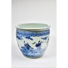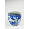 Paire de cache-pots en porcelaine bleu et blanche à décor de scène de cour et frise de masque de Taotié. Chine, XXème siècle H 47 x D 54 cm