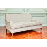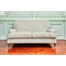 Paire de canapés reposant sur des pieds toupies en acajou mouluré à roulettes à l'avant, pieds sabres à l'arrière XIXe siècle Garniture de cotonnade grise mouchetée H 86 x L 145 x P 97 cm