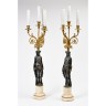 Paire de candélabres aux vestales en bronze patiné et bronze doré à quatre lumières en enroulement, reposant sur une base de marbre ...