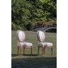 Paire de chaises en bois doré à dossier ovale, à décor d’entrelacs et frises de perles, reposant