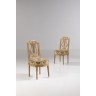 Paire de chaises en hêtre peint et doré, à dossier à décrochement ajouré en lyre, l'assise en fer à cheval reposant sur des pieds fuselés à cannelures