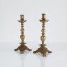 Paire de chandeliers en bronze, fût tourné en balustre, haut binet mouluré avec coupelle, base