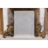 Paire de chenets aux enfants frileux, à décor de feuillages, enroulements et rocailles ajourées. Style Louis XV H 42×L 35 cm