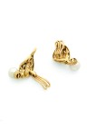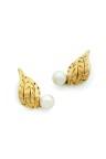 Paire de clips d'oreilles "feuilles" en or jaune 18k (750‰) ajouré chacun orné d'une perle de culture