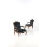 Paire de fauteuils en noyer mouluré et sculpté à dossier plat, à décor de cartouches, fleurs et
