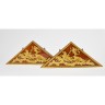 Paire de frontons en bronze doré et acajou à décor de char d'Apollon sur un nuage. Frise de palmettes en bronze