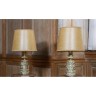 Paire de lampes à pétrole en cuivre à décor de raisins et pampres de vignes.