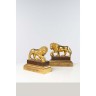 Paire de lions dit 'Médicis' en bronze doré Socle à l'imitation du porphyre Contre socle à refends en bronze doré Travail de style H 31 x L 31 x P 13,5 cm