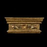 Paire de panneaux en bois sculpté, doré et polychromé à décor de marguerites entourées de rinceaux feuillagés ; partie supérieure à forte mouluration en doucine.