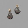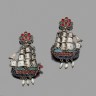 Paire de pendants d'oreilles "Caravelles" en argent (900‰) émaillé polychrome de toutes faces, des petites perles fines en pampille....