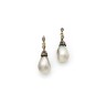 Paire de pendants d'oreilles en or jaune 18k (750‰) ornés chacun d'une perle en forme de goutte probablement fine, retenue par une corole sertie de diamants taillés en rose