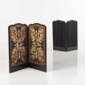 Paire de petits paravents à deux feuilles en bois noirci et tapisserie réalisée par l'atelier Seigneur.