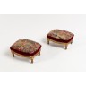 Paire de petits tabourets en bois mouluré, sculpté et doré, à décor de rais-de-cœur et reposant sur des pieds fuselés à cannelures, recouvert de tapisserie au point (usures). Style Louis XVI. H 18 x L 31 x P 23 cm
