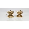 Paire de salerons en métal doré, la base figurant un rocher, la coupelle en forme de coquille soutenus par un aigle aux ailes déployé.