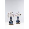 Paire de vases en porcelaine bleue nuancée (de Chine ?) surmontés de bouquets de fleurettes en porcelaine polychrome