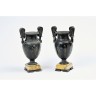 Paire d'urnes en régule à décor néoclassique. Base rectangulaire en marbre jaune de Sienne Haut. 31 cm