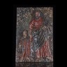 Panneau en chêne sculpté en bas-relief et polychromé représentant le Trône de Grâce. XVIe siècle H 50,9 cm - Largeur : 29,8 cm (petite restauration)