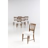 Paolo Buffa (1903-1970) Série de six chaises Bois vernis et textile Modèle créé vers 1950 H 90×L 48×P 47 cm Expertisés par les Archives Paolo Buffa.