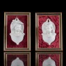 ParisDeux médaillons d'applique en biscuit représentant des têtes d'enfants coiffés dans le style de la Renaissance émergeant d'un écu.