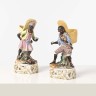 Paris, Jacob Petit Paire de statuettes en porcelaine représentant un homme et une femme noir portant une hotte sur le dos et tenant une gourde et des flurs, debout sur une base rectangulaire ajourée, décor polychrome et or. Marqués : jP en bleu, manufacture de jacob Petit. Milieu du xIxe siècle h 27 cm un bras et une hotte restaurés.
