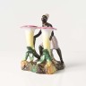 Paris, Jacob Petit groupe en porcelaine formant vase représentant une femme noir soutenant deux flurs de digitale sur une base rectangulaire, décor polychrome. Marqué : j.P. en bleu, manufacture de jacob Petit. Milieu du xIxe siècle h 16 cm Bibliographie : Madeleine Castaing, Émily Evans Eerdmans, Ed. du Regard 2010, p. 228