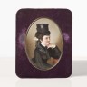 >Paris Médaillon ovale en porcelaine à décor polychrome d’un portrait de jeune file assise, vêtue d’une robe et d’un chapeau noir. Signé Kantz Deuxième moitié du xIxe siècle h 15,5 cm