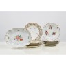 Suite de six assiettes en porcelaine à décor de roses et semis de roses.