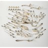 Partie de service de couverts en argent comprenant 12 porte-couteaux, 12 petites fourchettes à gâteaux, 12 cuillères à moka, 10 cuillères à shaker, 33 pics à brochettes, 12 grands couverts, 12 couverts à poisson, 12 couverts à entremets, 11 petites cuillères, et 15 pièces de services diverses.