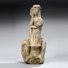 Partie inférieure d'un Calvaire en pierre calcaire sculptée. Vierge à l'Enfant à la tête couronnée d'un côté, jambes du Christ sur sa croix de l'autre ; deux personnages de chaque côté au pied de la croix. Normandie, XVe siècle H 91 cm (Érosion, cassée et recollée)