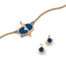 • Parure moderniste en or jaune 18k (750‰) et lapis-lazuli rehaussée de diamants sertis clos.