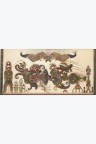 Encre de Chine, crayons de couleur et feutre doré sur papier calque marouflé sur panneau