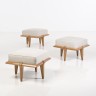 Paul László (1900-1993) Ensemble de trois tabourets Acajou et tissu Édition Brown Saltman Date de création : années 1950 H 47 × L 74 × P 70 cm