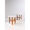 Pavel Novak (XX) Paire de guéridons Chêne gougé et travertin Date de création : vers 1980 H 77 × Ø 90 cm