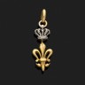 Pendentif articulé figurant une fleur de lys en or jaune 18k, 750‰ surmontée d'une couronne en or gris et rehaussée de diamants taillés en rose.