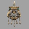 Pendentif d'inspiration égyptienne en or jaune 18k (750‰) finement ciselé et argent (800‰) rehaussé de diamants taillés en rose, d'émeraudes et de perles fines dont quelques-unes en pampille.