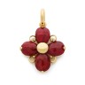 ¤ Pendentif en forme de fleur en or jaune 018k (750‰) et cabochons de rubis taillés en briolette Dimensions : 5,8 x 4 cm Poids brut : 20,58 g