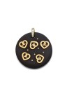 Pendentif rond en ébène de Macassar à décor clouté de coeurs en or jaune 18k (750‰) rehaussé de diamants ainsi que la bélière