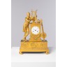 Pendule en bronze doré à décor d'Orphée jouant de la lyre, feuilles d'acanthes et motifs géométriques, reposant sur des pieds boules...