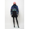 BLOUSON zippé en lapin lustré noir, bleu et vert