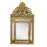 Petit miroir à parecloses en laiton repoussé sur monté d'un fronton ajouré à décor de rocailles et coquilles XVIIème siècle H 60 x 33 cm