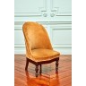 Petite chaise en hêtre teinté, à dossier en gondole, reposant sur des pieds en balustre à cannelures ; fragment d'étiquette aux arme...