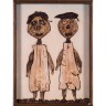 Philippe Dereux (1918-2001) Les Bagnards, octobre 1977 Technique mixte sur panneau dans emboîtage réalisé par l'artiste Signé en bas à gauche du monogramme et daté en bas à droite Contresigné, daté, titré, et situé au dos 71 x 53 x 6 cm Provenance : Galerie Le Lutrin, Lyon Acquis auprès de cette dernière par l'actuel propriétaire Bibliographie : Philippe Dereux, "Le journal des épluchures", Paris, La Halle Saint-Pierre, Marseille, les Amis de l'oeuf sauvage, 2002, reproduit p. 12 Dereux a noté sur des carnets, les matériaux employés pour la composition de ses tableaux, concernant "les Bagnards", octobre 1977 : "Deux grands personnages dont le costume est fait d'un seul morceau de courgette, tête en courgette avec yeux en tomate ou ronds d'aubergine, bouches en avocat, nez en figue, coiffures en banane, jambes et bras en melon, pieds en noyaux de pêche ou quetsches, mains en graines de courge, sol en orange"