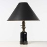 Pied de lampe à pétrole en verre noir à pans coupésMarqué JS
