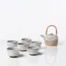 Pierre Culot (1938-2011) Théière moyenne et six tasses Céramique émaillée Estampillés C Date de création : années 1970 Théirère : H 21 x 18 x 16,5 cm Tasses : H 6,5 x 11 cm