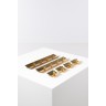 Pierre Forsell (1925-2004) Ensemble composé de six bougeoirs Laiton Édition Skultuna Estampilles d'éditeur Modèle créé vers 1950 H 3×L 34,5×P 7,5cm (le plus grand) H 3×L 7×P 7,5cm (le plus petit)