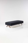 Teck et matelas tapissé avec un lainage de la gamme développée par Raf Simons pour Kvadrat