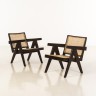 Pierre Jeanneret (1896-1967) Easy Armchair Paire de fauteuils Bois et cannage Date de création : vers 1960 H 78 × L 55 × P 68 cm Bibliographie : E. Touchaleaume & G. Moreau, "Le Corbusier Pierre Jeanneret - L'aventure indienne, Design Art Architecture", Éditions Gourcuf Gradenigo / Éric Touchaleaume Galerie 54, Paris, 2010, p.342, 352, 355 et 563