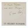 Pierre LOTI. Un pèlerin d'Angkor. Paris, Calmann-Levy, s.d. (1912). In-12, bradel demi-vélin, dos orné d'un fleuron doré, couverture et dos (David). EDITION ORIGINALE. Exemplaire sur papier d'édition avec la couverture jaune, portant un envoi autographe signé sur le faux-titre : à Claude Farrère / (mon ami Bargone)/ Pierre Loti. Frédéric-Charles-Pierre-Edouard Bargone, plus connu sous son nom d'écrivain Claude Farrère, devint officier de marine, prit part aux campagnes de Chine, du Tonkin, du Maroc et abandonna l'armée en 1919. Ce fut un grand ami de Loti et fut admis, comme lui, à l'Académie française. L'exemplaire contient par ailleurs des notes, certaines signées, de la main de Farrère aux pages : II (à la fin de la dédicace à Paul Doumer) : Et je l'ai laissé tuer / sous mes yeux, le 6 / mai 1932, pour le / malheur décisif de la / France… / C.F. (Paul Doumer fut assassiné le 7 mai 1932 par le russe Gorgulov). - p.222, dans la marge : Tu avais encore dix ans de vie et trois ans de martyres… - p.229, à propos du passage Tant de lieux d'adoration éperdus … tant de pagodes, de mosquées, de cathédrales…, Farrère note : Ô Loti ! tu n'as pas écrit " Temples ". Dos sali.